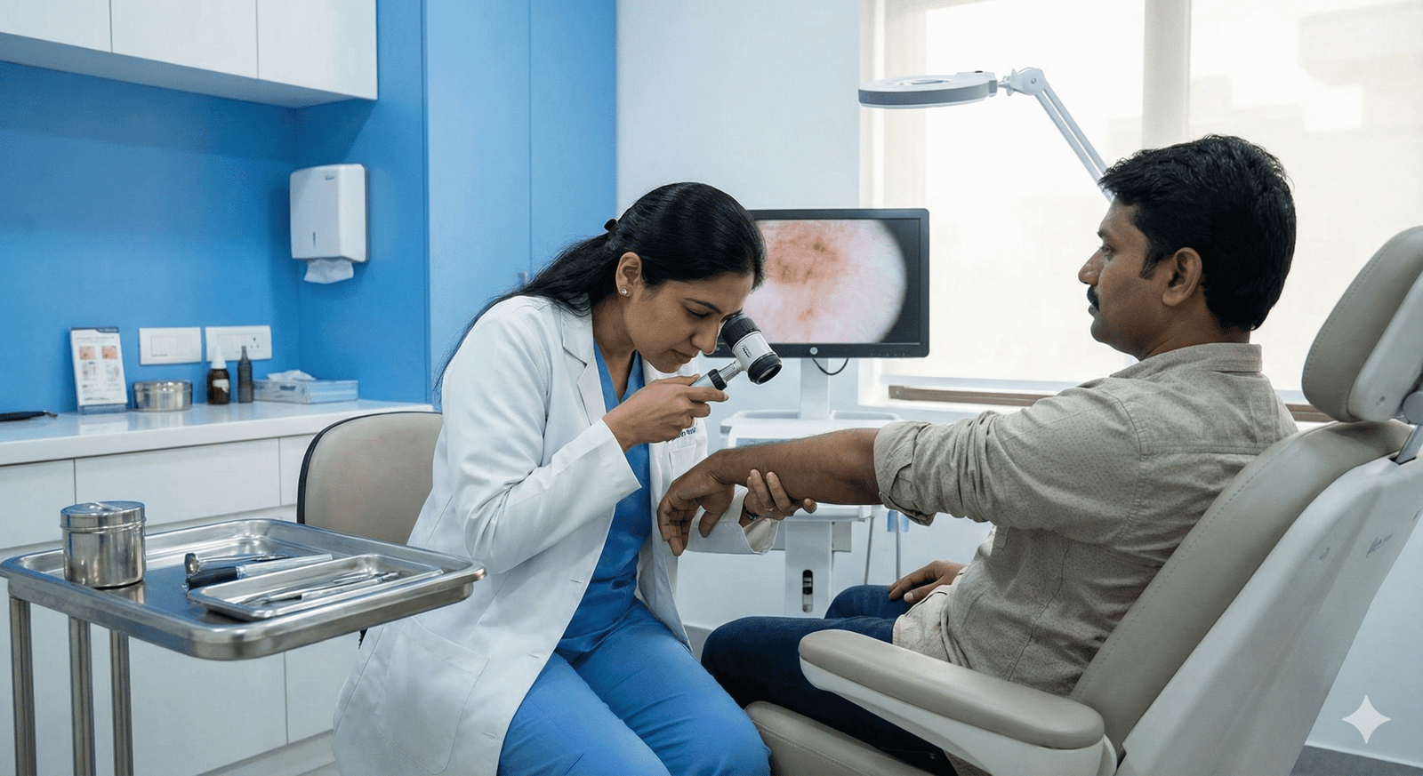 Treats skin, hair, and nail disorders, allergies, and cosmetic dermatological procedures.